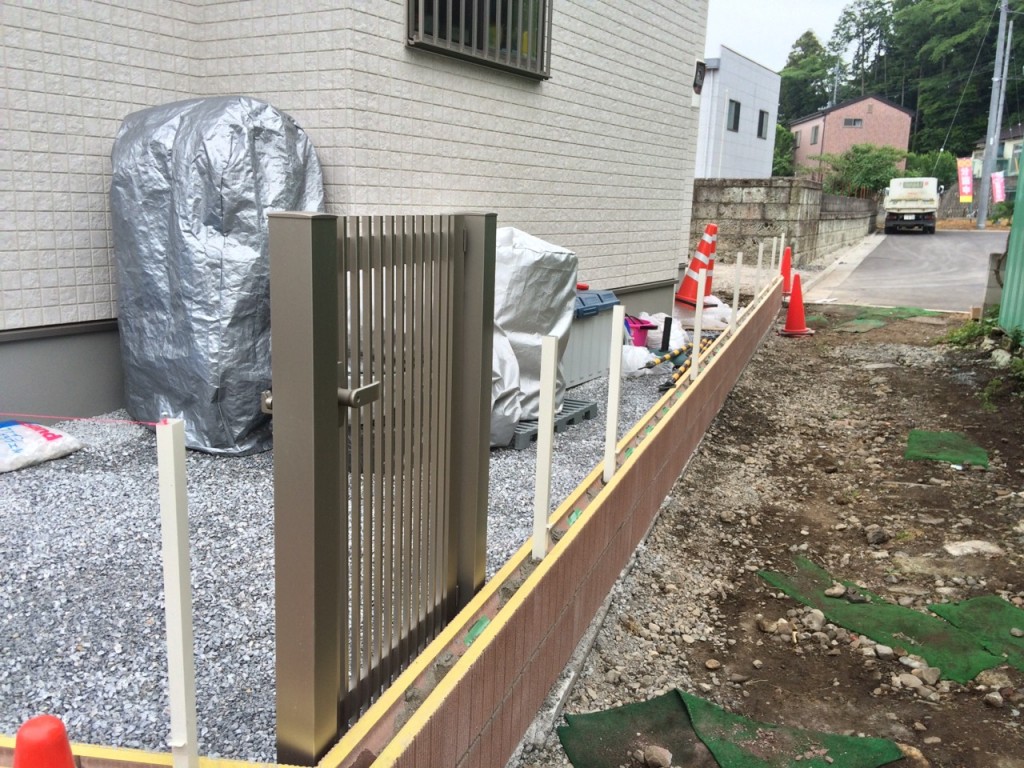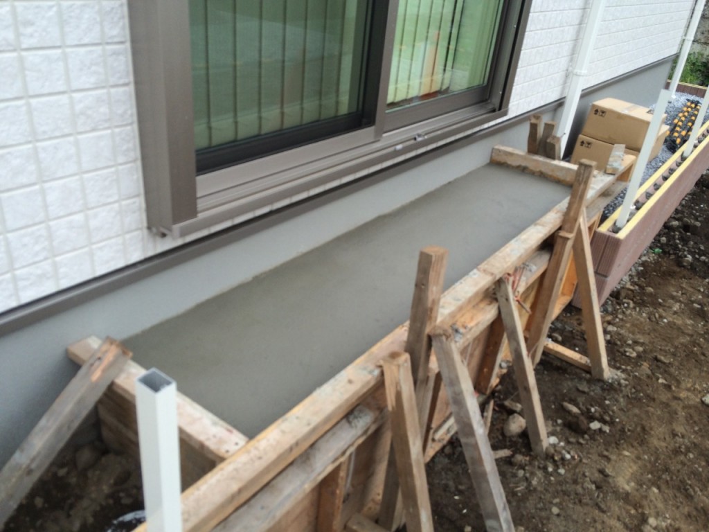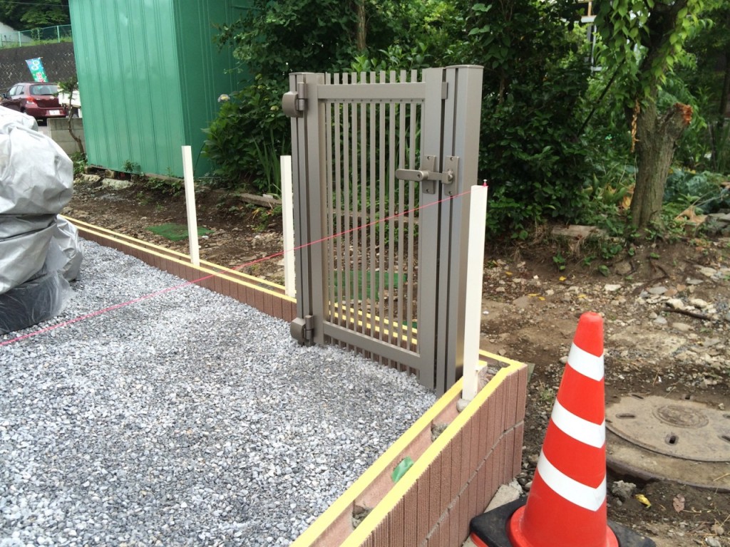 今日は 宇都宮市 O町 K様邸の住宅後ろの出入口の門扉取付、フェンスの柱立て、掃き出し窓前ステップの生コン打設、