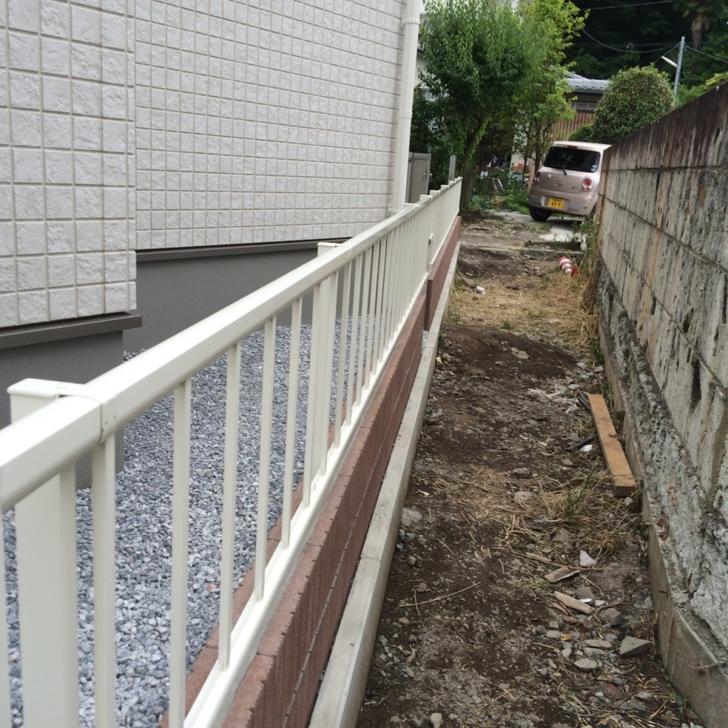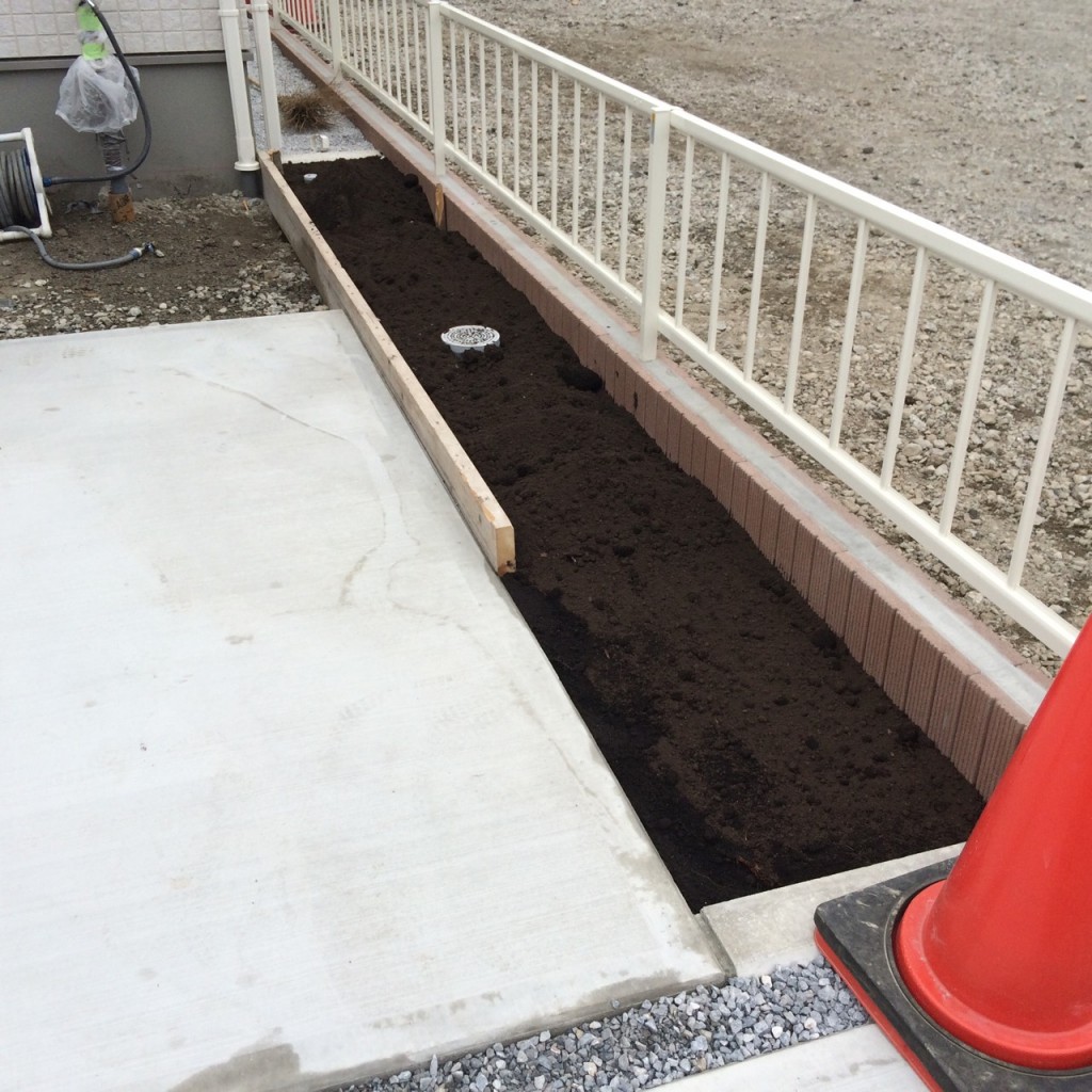 今日は宇都宮市 O町 K様邸の駐車場土間コンクリート打設、花壇部黒土入れ、フェンス取付の作業をしました。