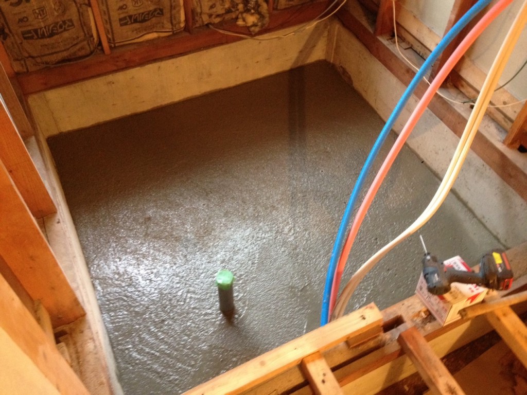 今日は 小山市 の住宅のお風呂場の土台となるコンクリート土間打設、お風呂関係の配管等の交換や調整するのに、