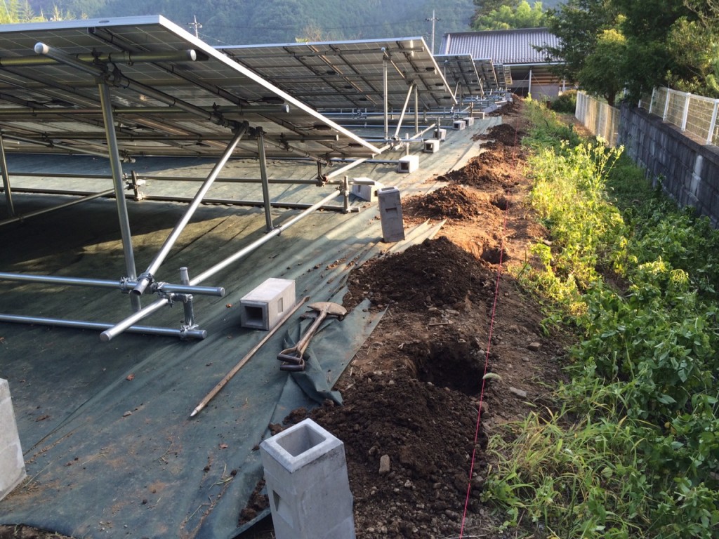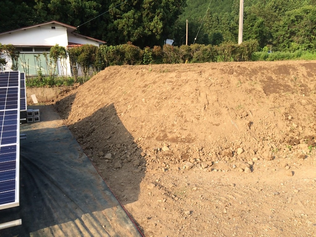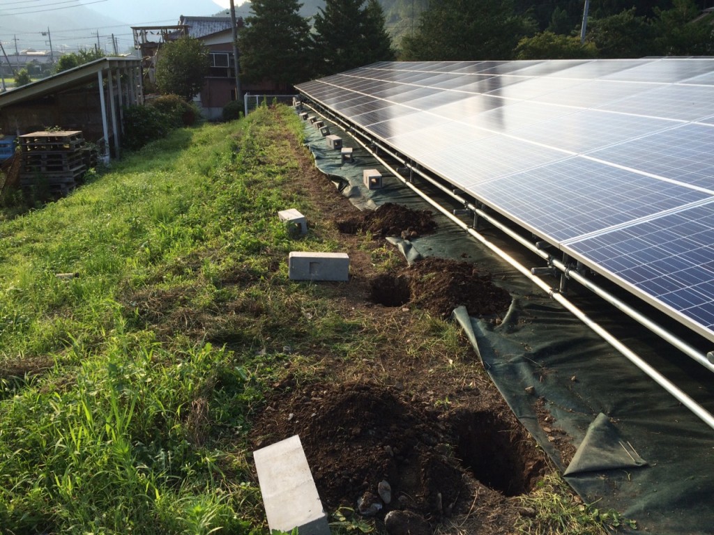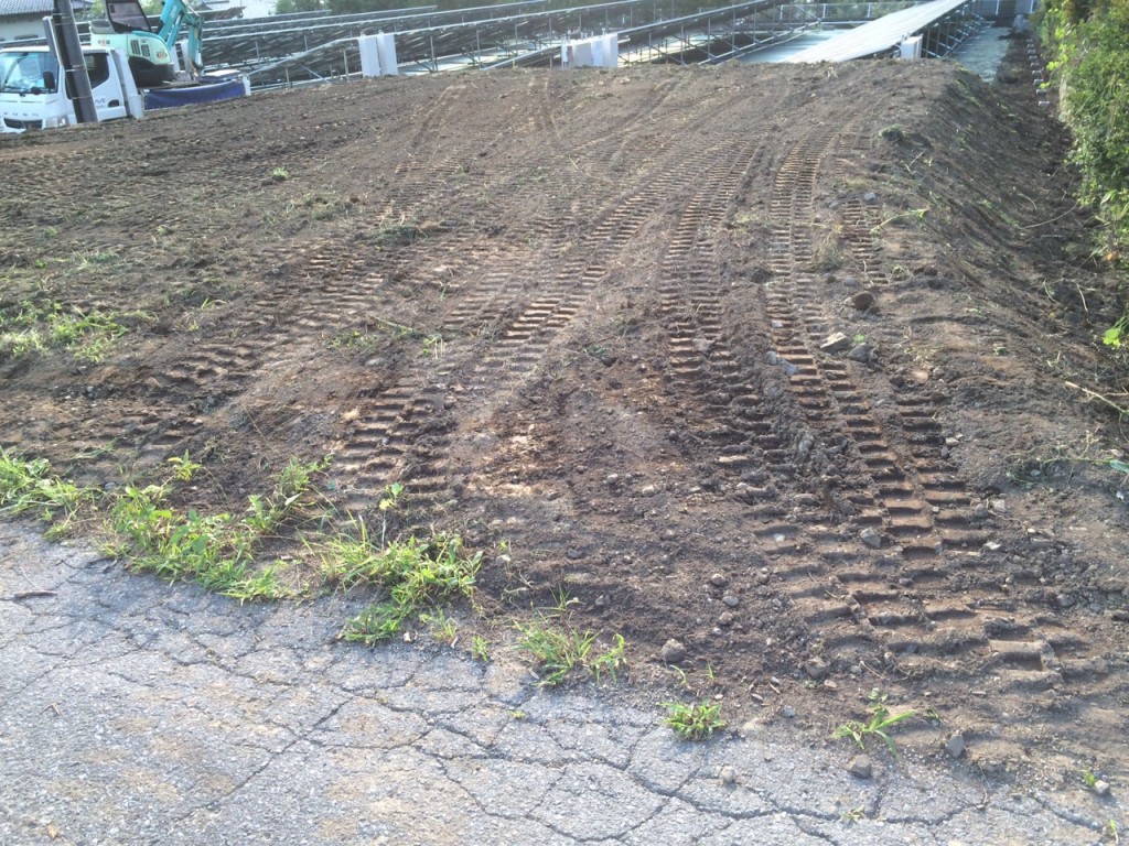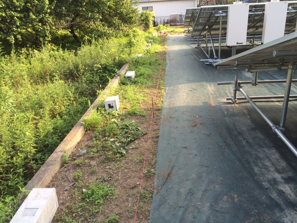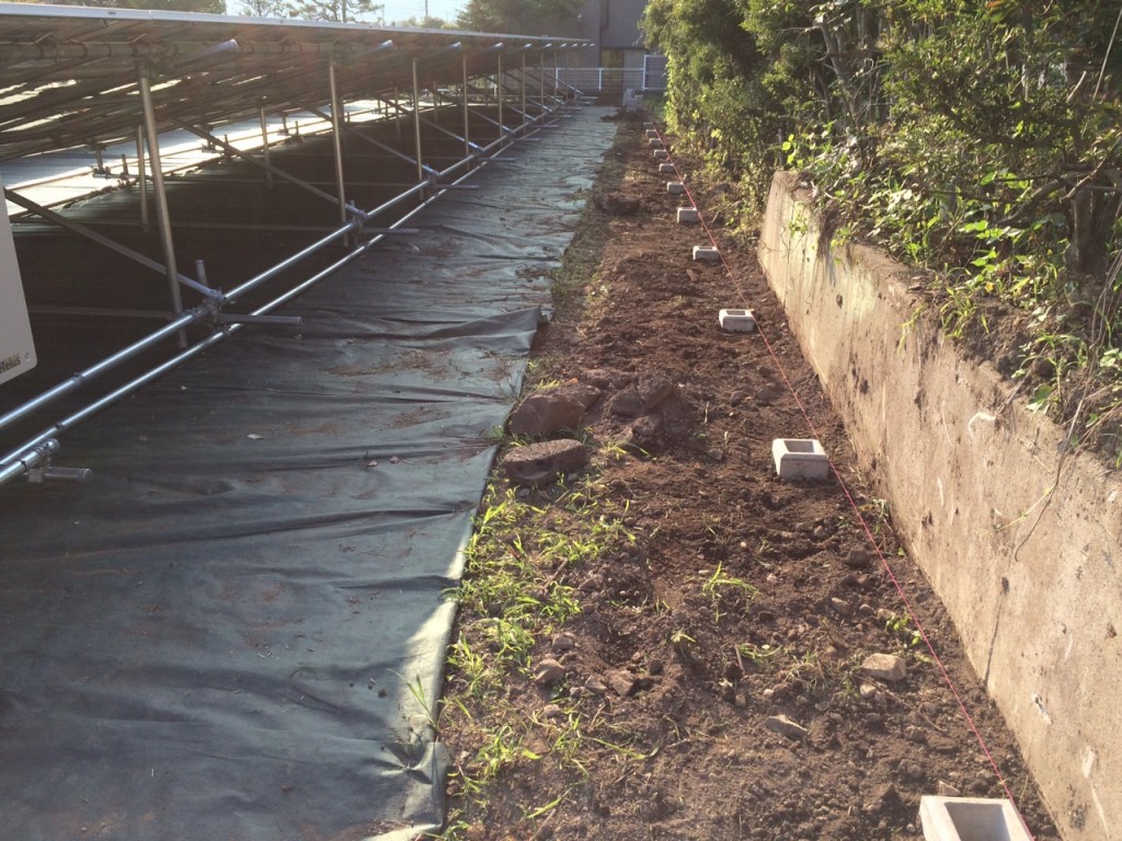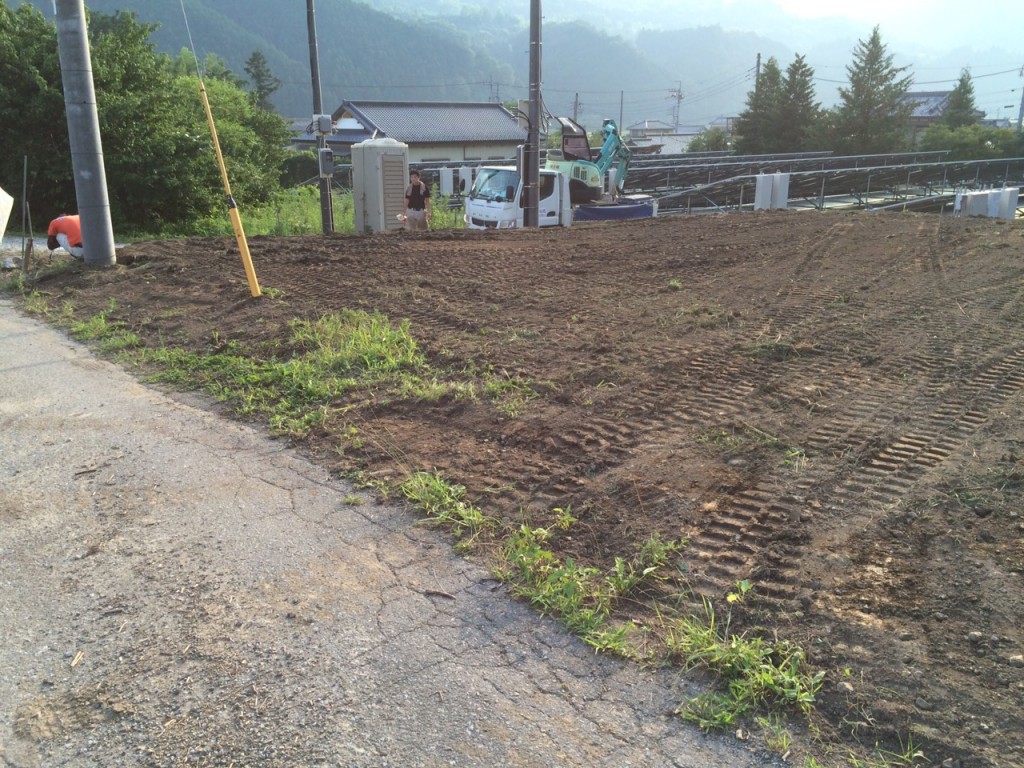 鹿沼市のメガソラー周りの独立基礎、フェンス取付の作業内容で、今日は草刈り、整地、掘削、独立基礎伏せの作業をしました。