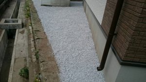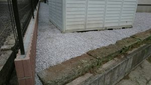 今日は宇都宮市 H町のカーポート組み、地先ブロック敷設、防草シート、6号砕石敷きの作業と、