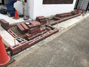 埼玉県久喜市の花壇レンガ積、コア抜きの作業をしました。
