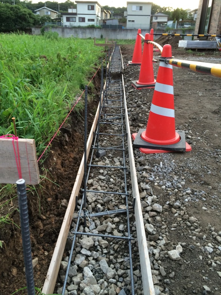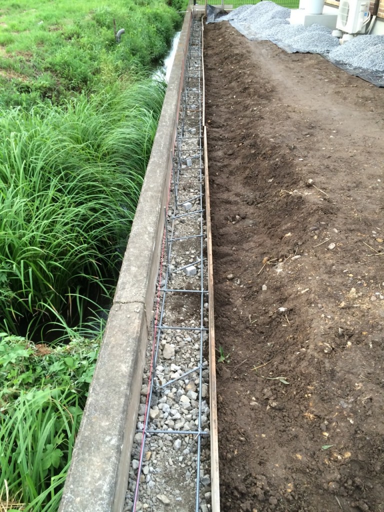 芳賀郡 M町のブロックベースの盤造り、配筋、枠組、防草シート、6号砕石敷きの作業をしました。