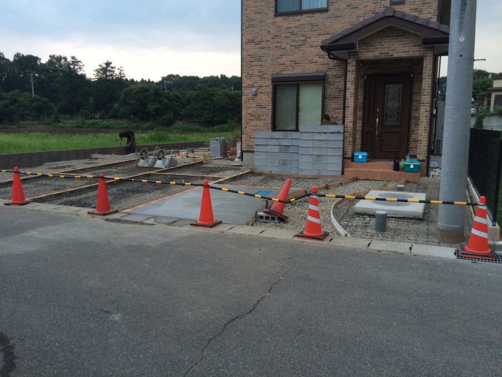 今日は芳賀郡 M町の駐車場土間コンクリートの見切インター伏せ、生コン打設、