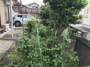 今日は宇都宮市 Y町の駐車場拡張工事として、既存ブロック、フェンス門扉解体、植栽伐採・抜根、