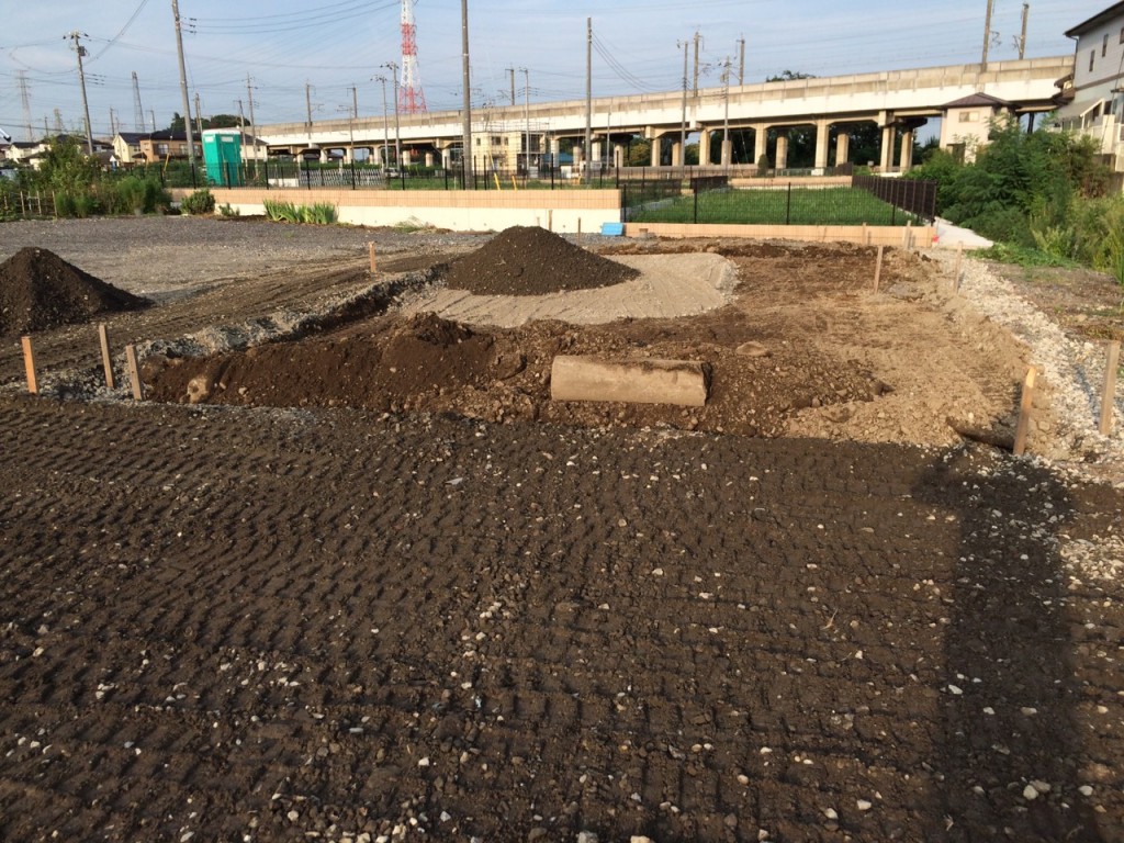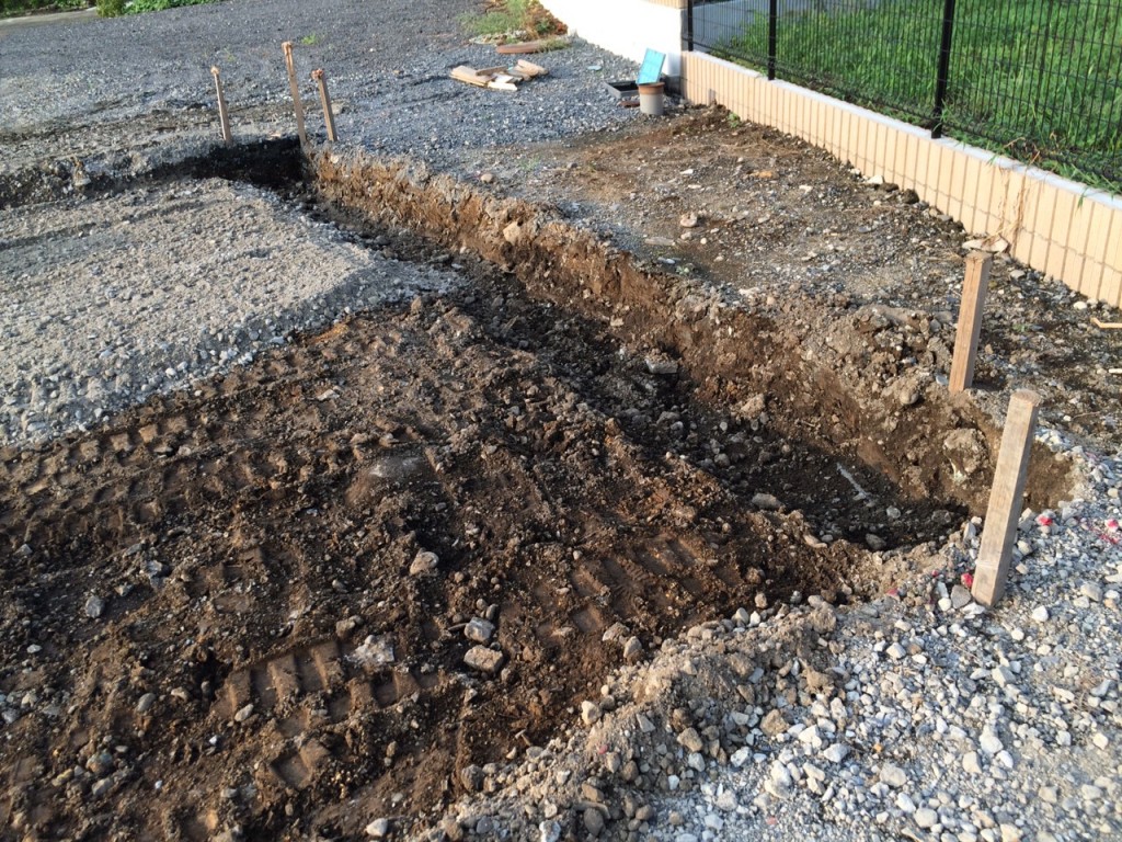 小山市 H町のガレージの下地の掘削、砕石敷き、フェンス柱部ハツリの作業をしました。