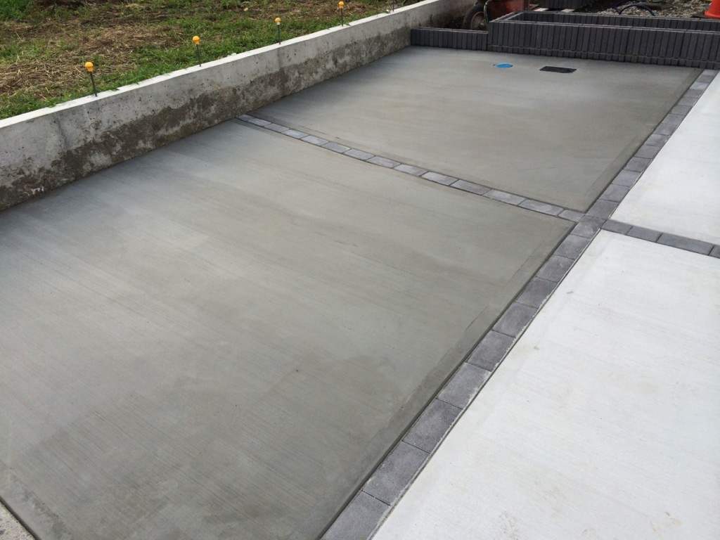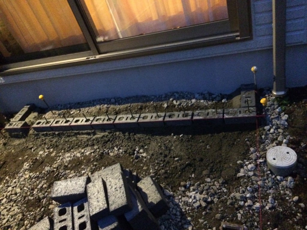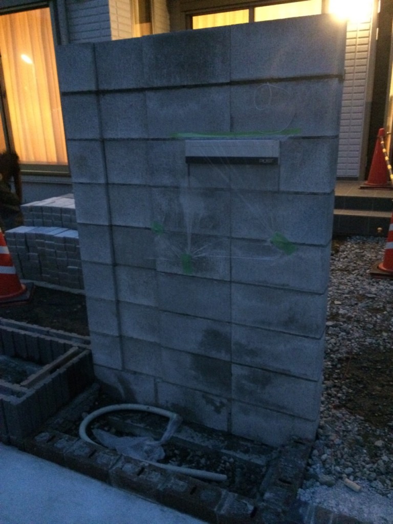 今日は宇都宮市 T町の駐車場土間コンクリート打設、門柱ブロック積、ピンコロ目地、