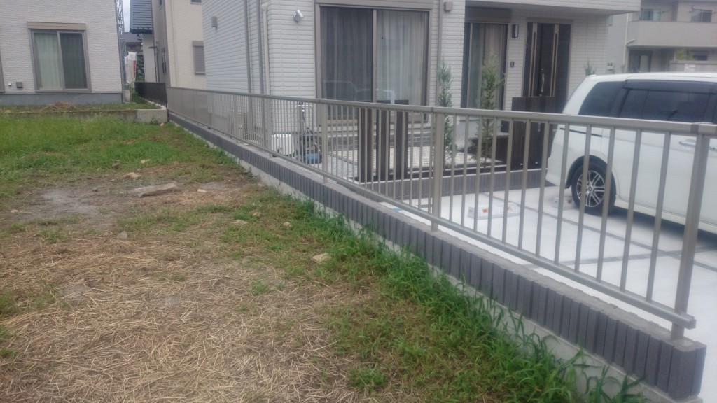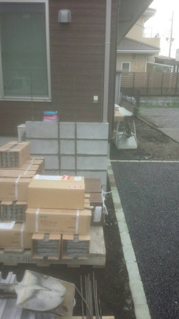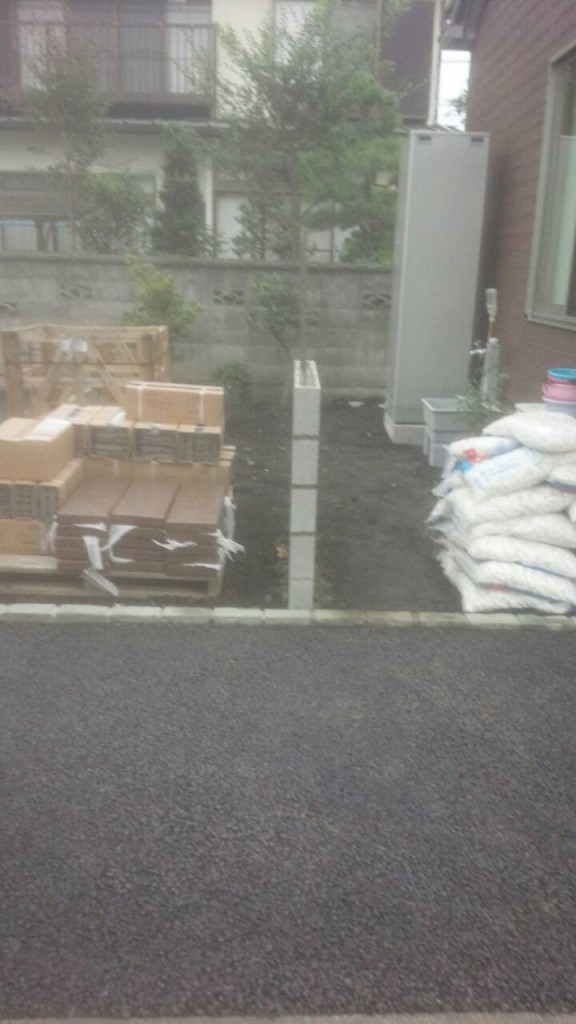 宇都宮市 N町の目隠しフェンス取付、レンガ敷き込み、枠組の作業と、