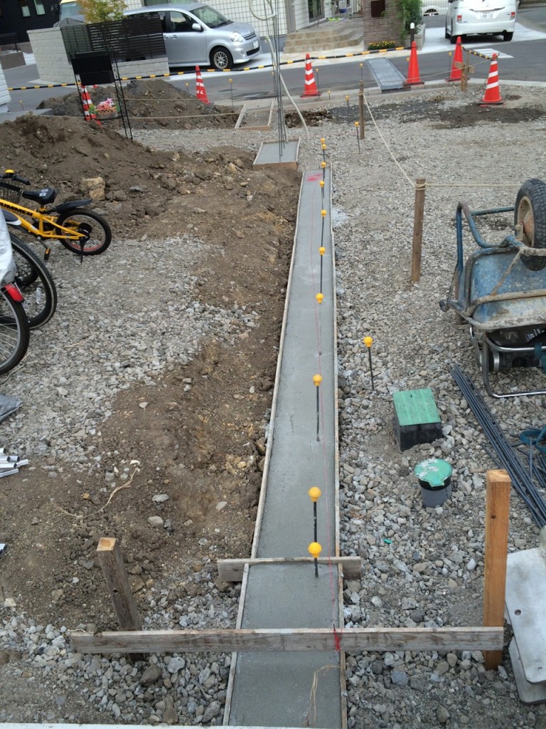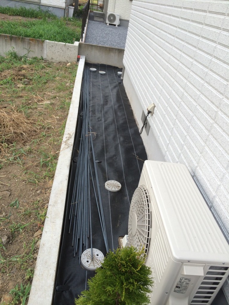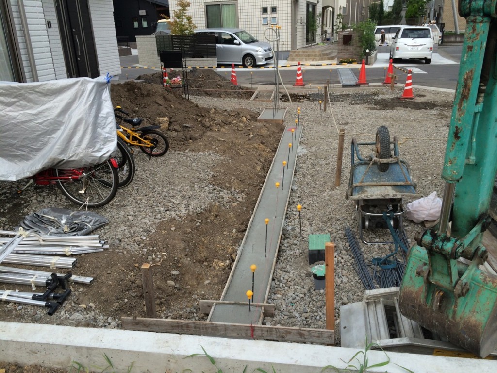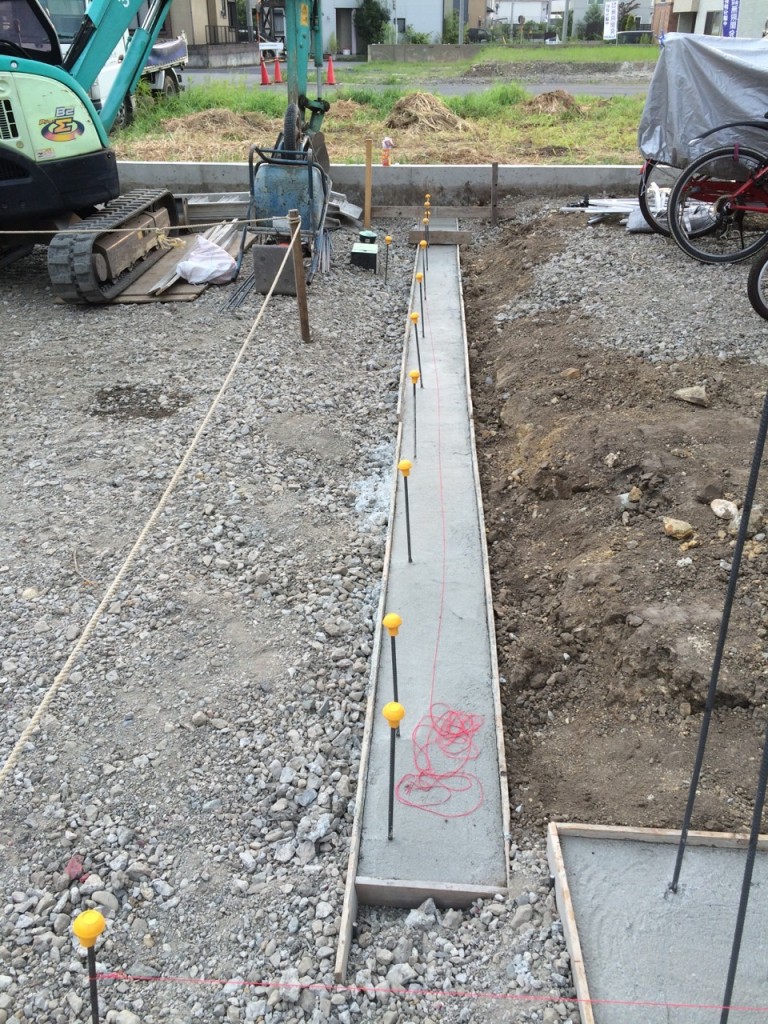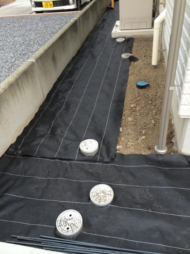 今日は宇都宮市 T町 K様邸のブロックベース部鉄筋配筋、ブロックベース生コン打設、防草シート敷きの作業と、