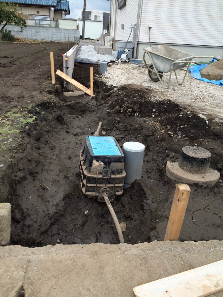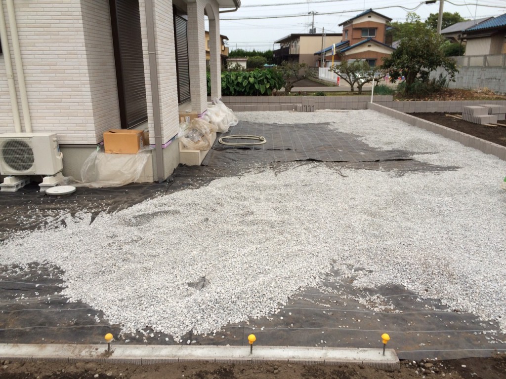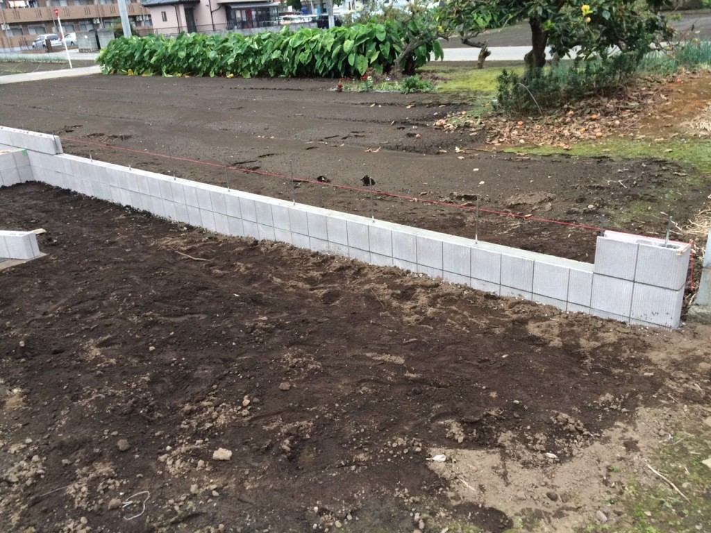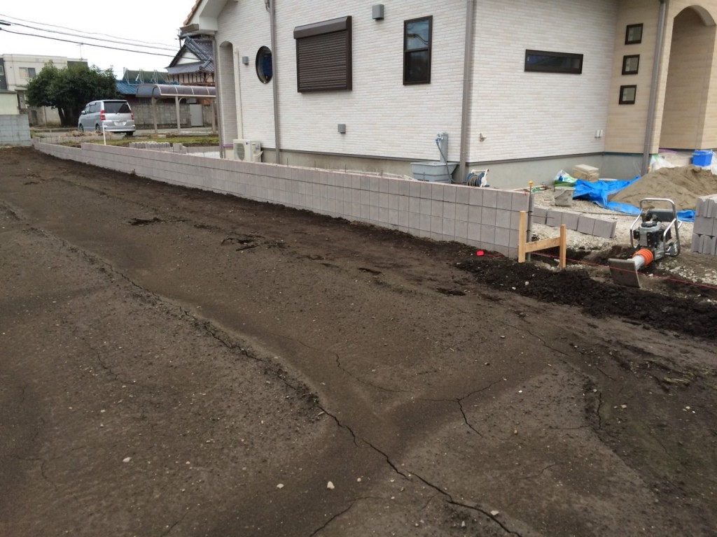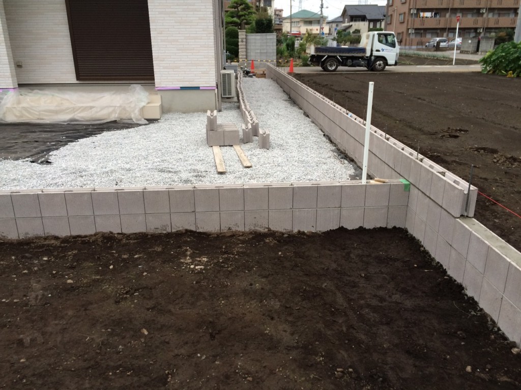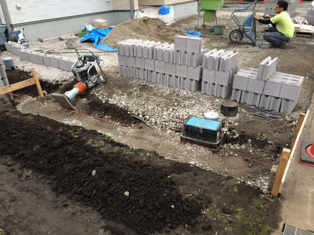 今日は小山市 E町のブロック積、6号砕石敷きの作業と、