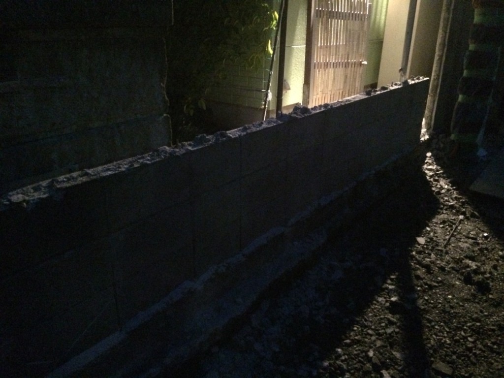 宇都宮市 S町の駐車場土間コンクリート打設、既存ブロック塀一部解体作業、門柱ブロック積の作業をしました。