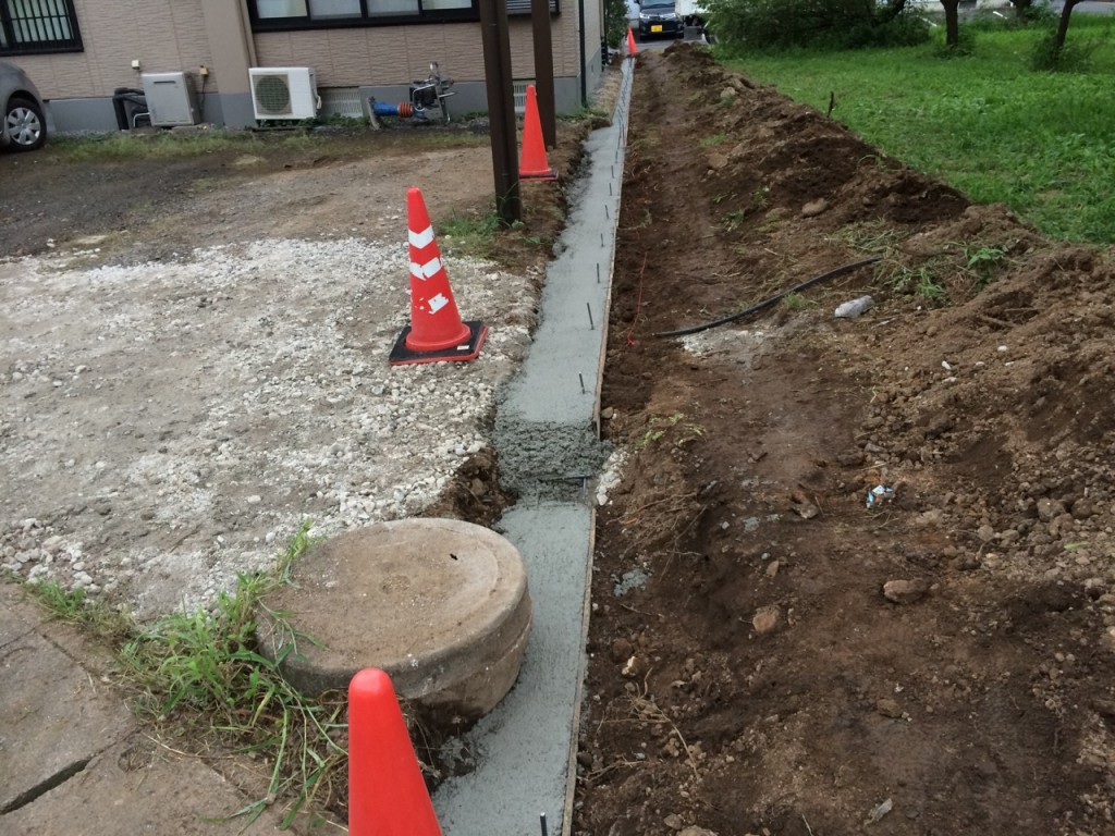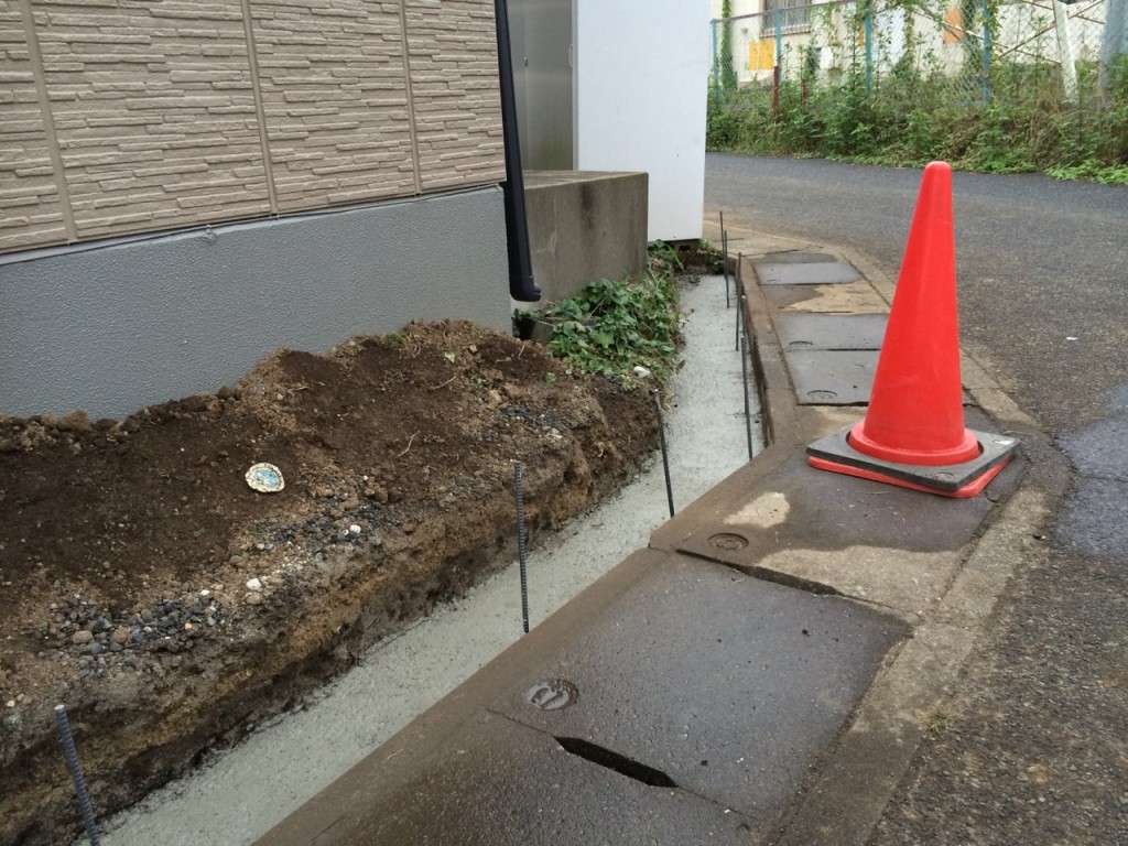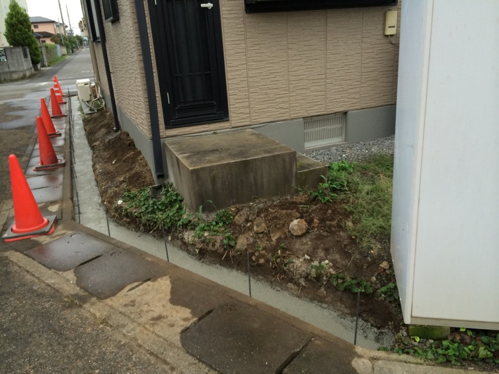 小山市 K町のブロックベース配筋、生コン打設の作業と、
