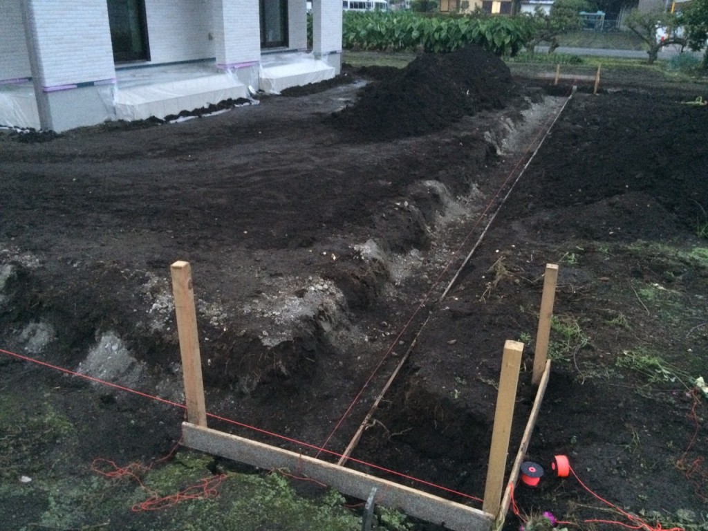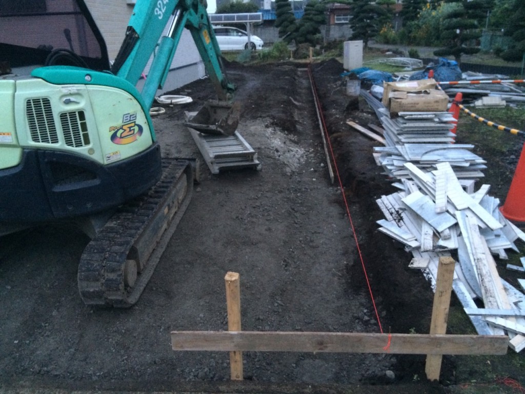 小山市 E町のブロックベース部掘削、砕石敷きの作業をしました。