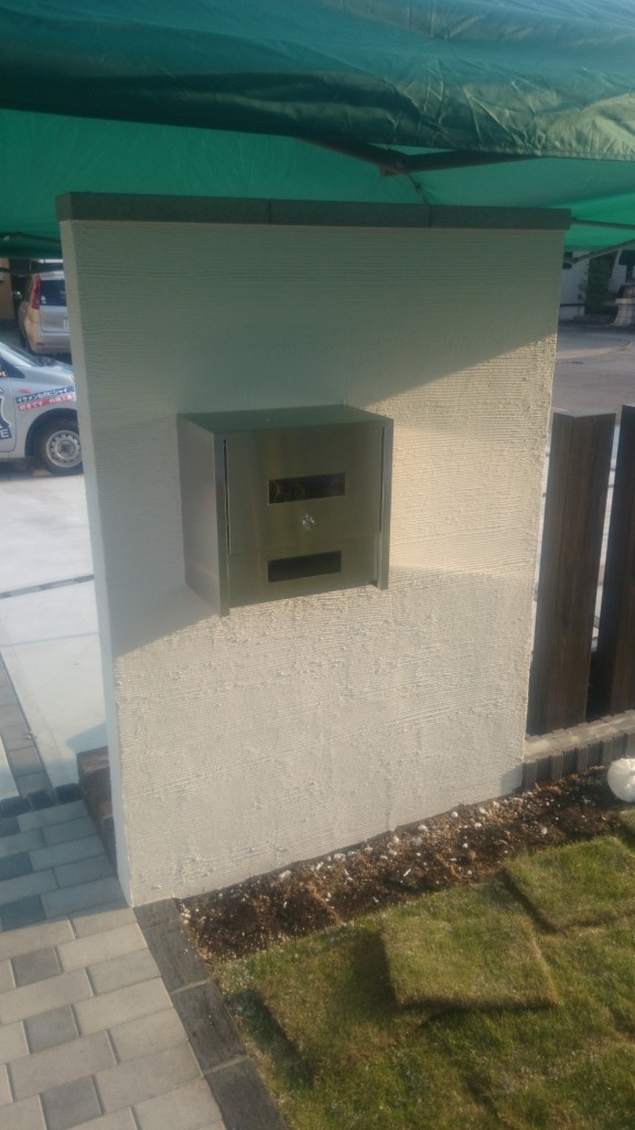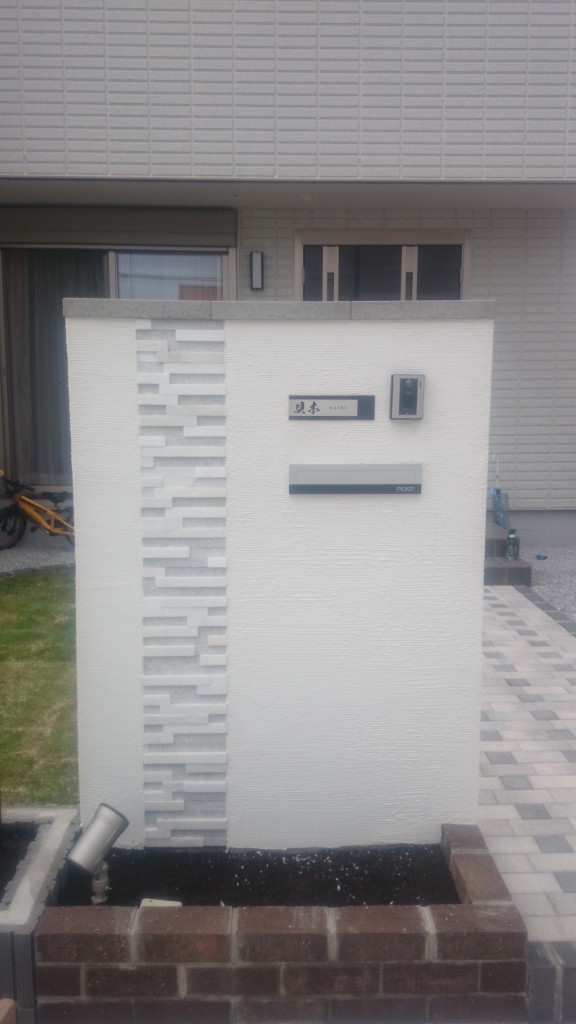 今日、表札取付、インターホン取付、スポットライト取付の作業と
