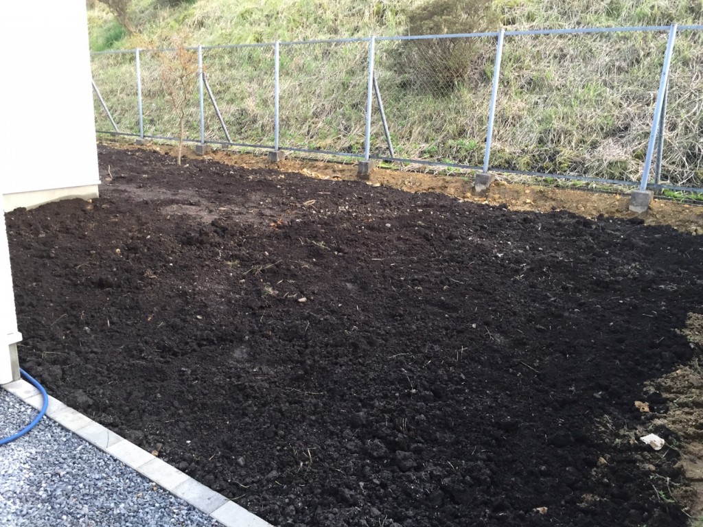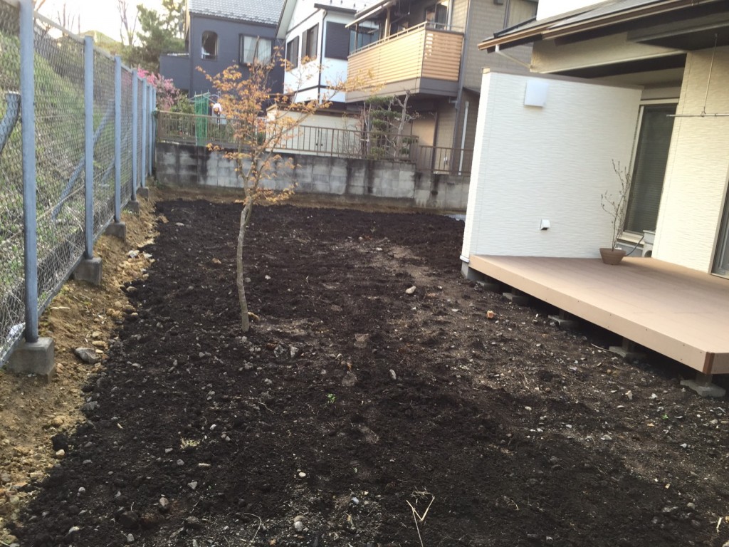 今日は宇都宮市 Y町 O様邸の盛土、防草シート敷き、6号砕石敷きの作業と、