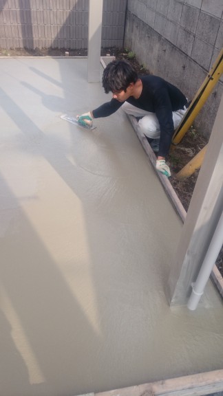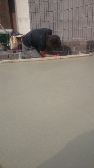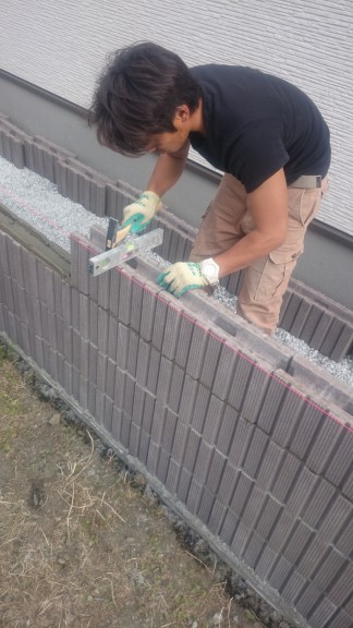 ブロック積、ポスト取り付け、駐車場土間打設の作業をしました。