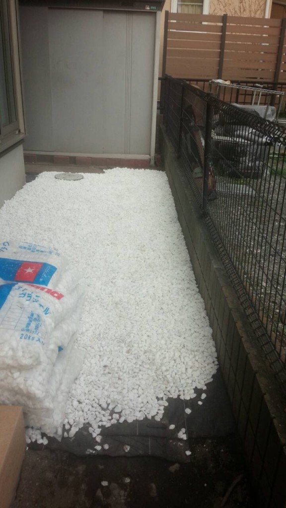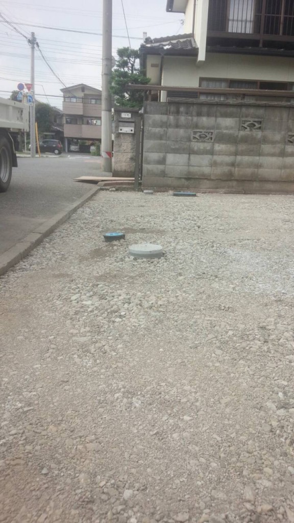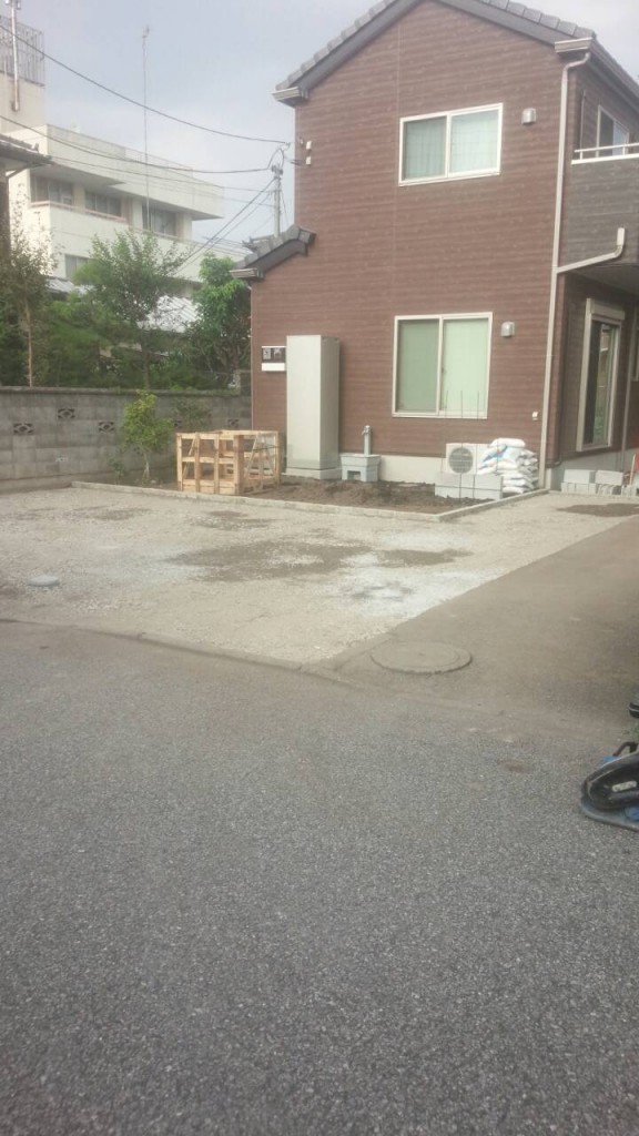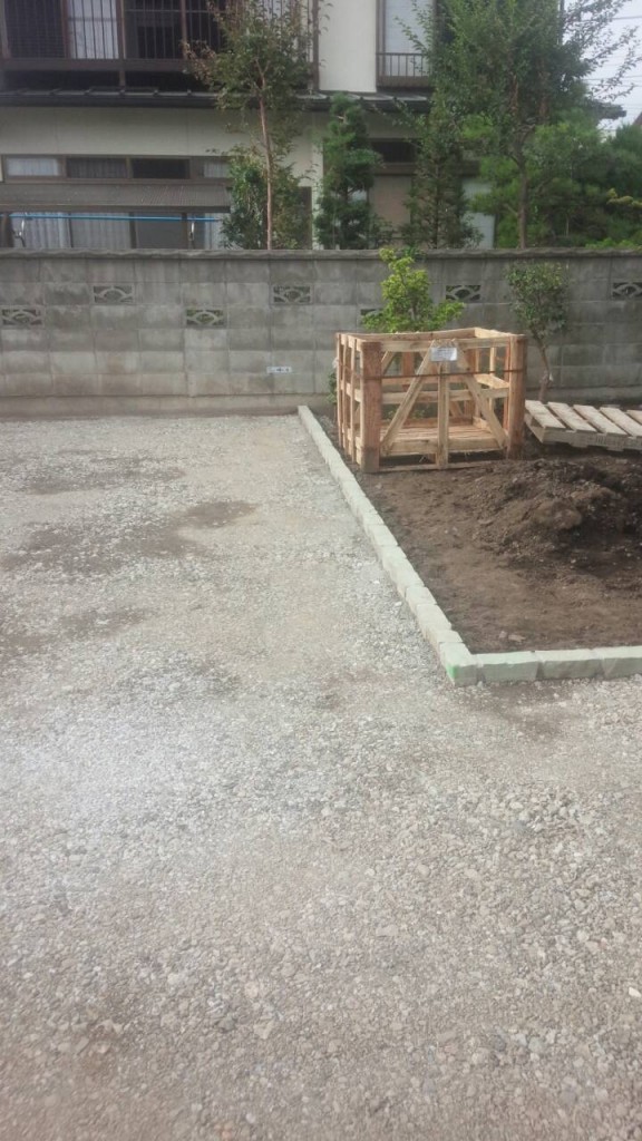 今日は宇都宮市 H町の6号砕石敷き、化粧砂利敷き、ピンコロ目地、駐車場アスファルト部盤造りの作業と、