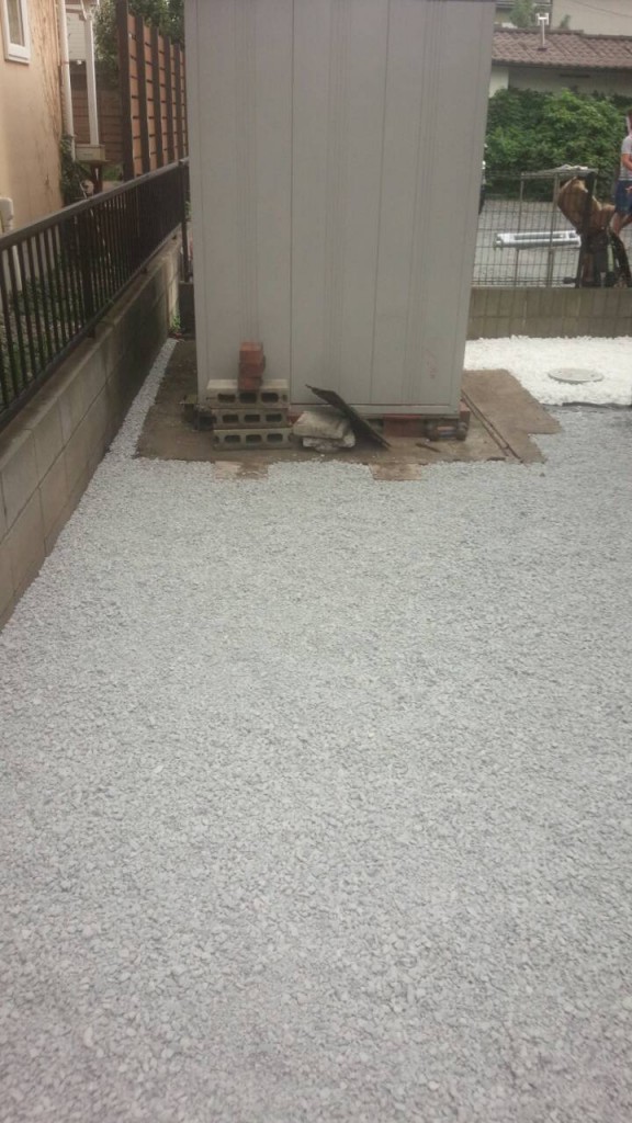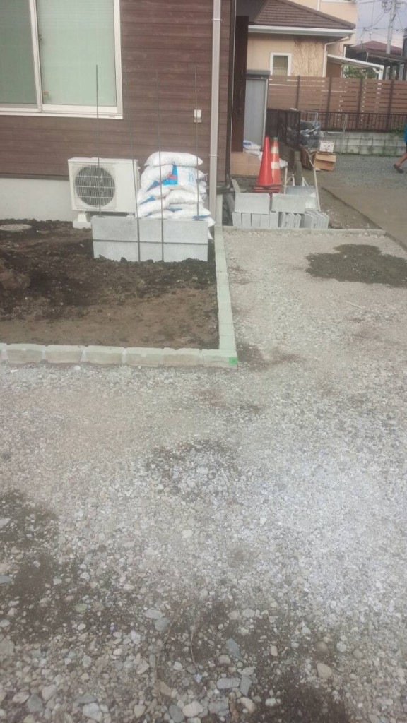 宇都宮市 N町 の目隠しフェンス柱埋め込み部掘削、砕石敷き、既存レンガ花壇解体の作業をしました。